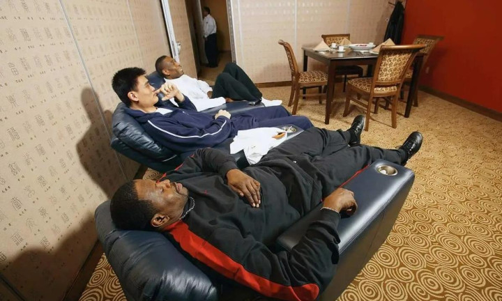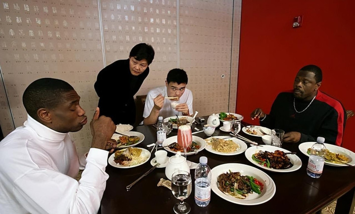 有这样一个有趣的场景:三位身高超过两米的NBA中锋,挤在一家中餐馆的包厢里,认真地讨论着虾仁炒饭和牛肉的美味。